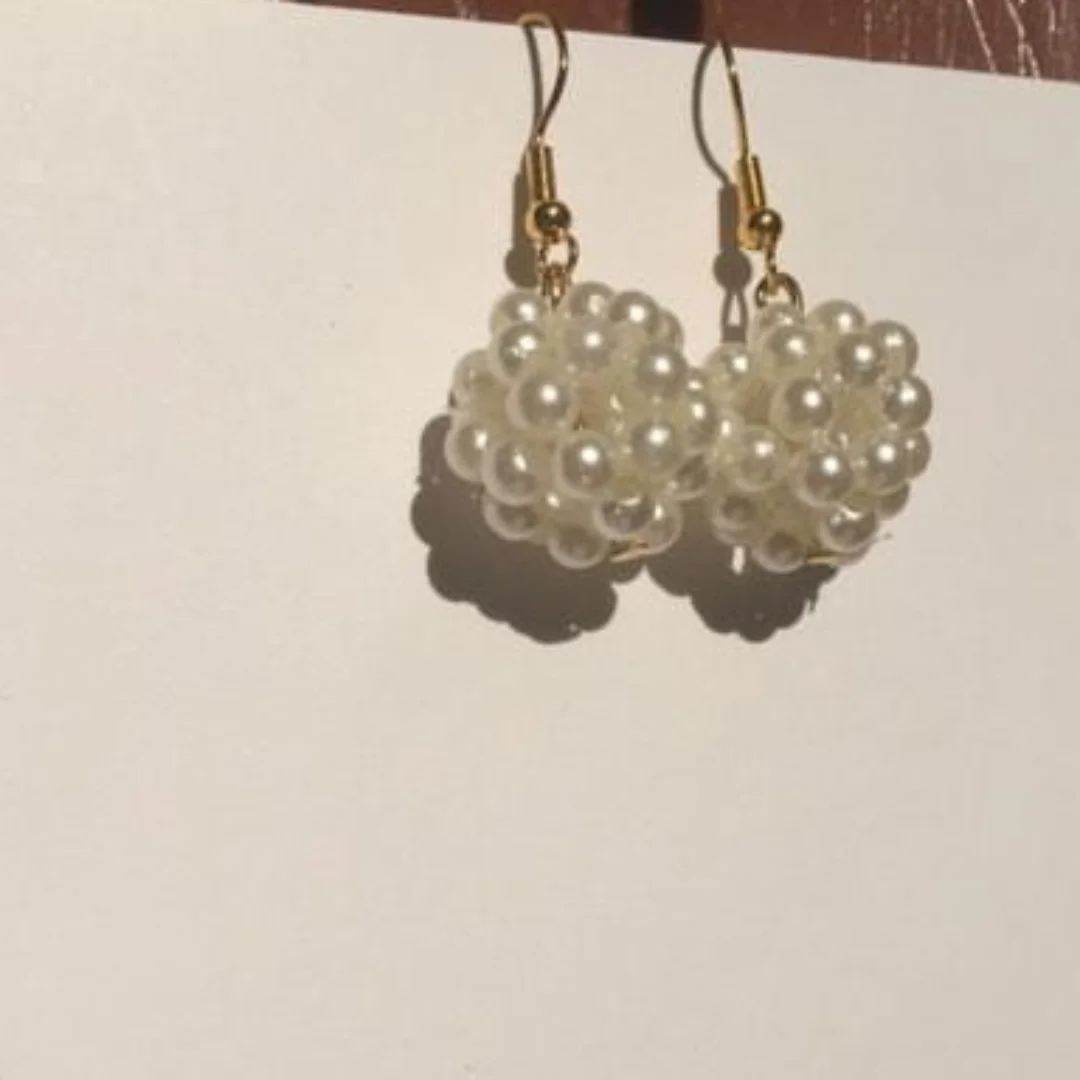 hand beaded pearl ball earing